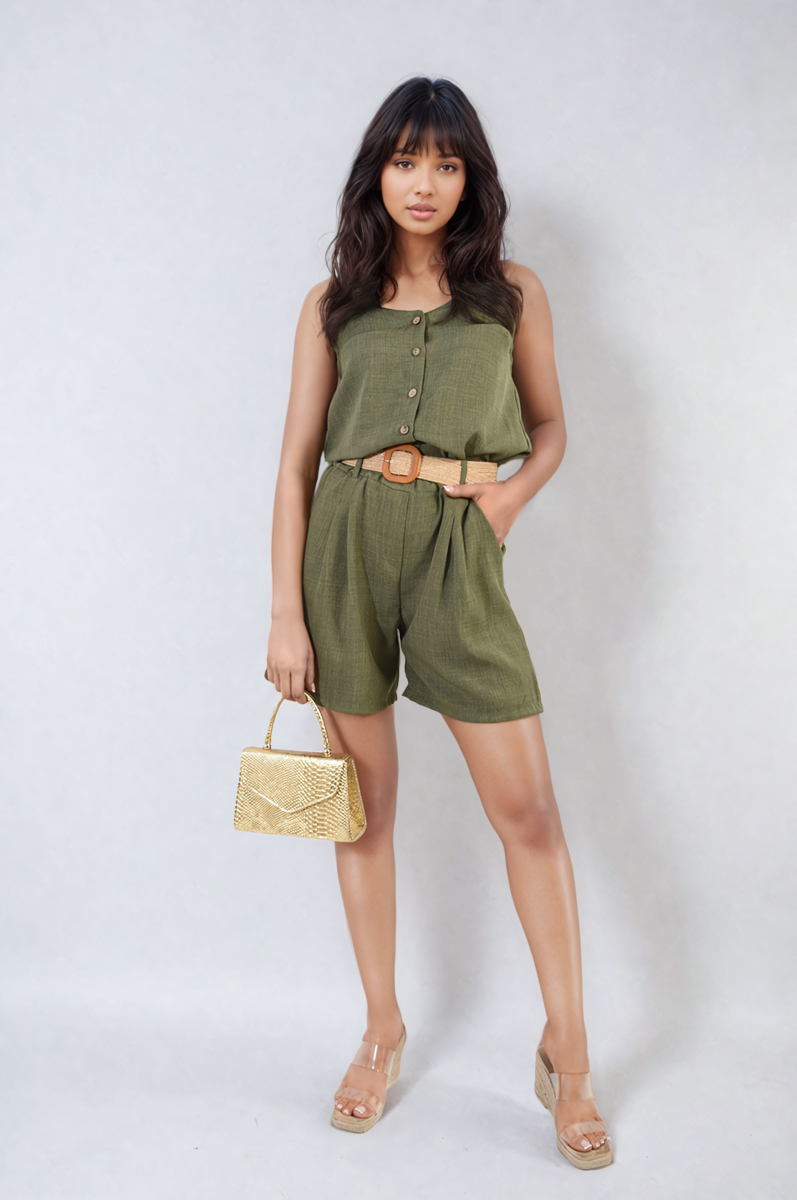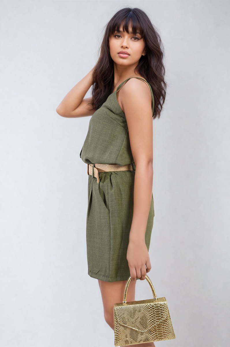 Wrap Over Tie Belt Frill Sleeve Jumpsuit