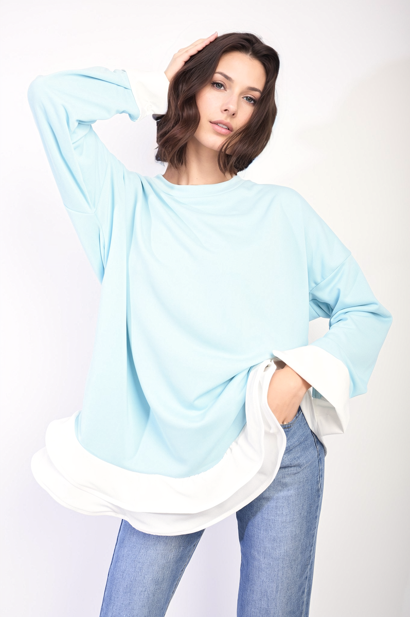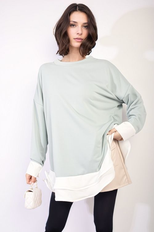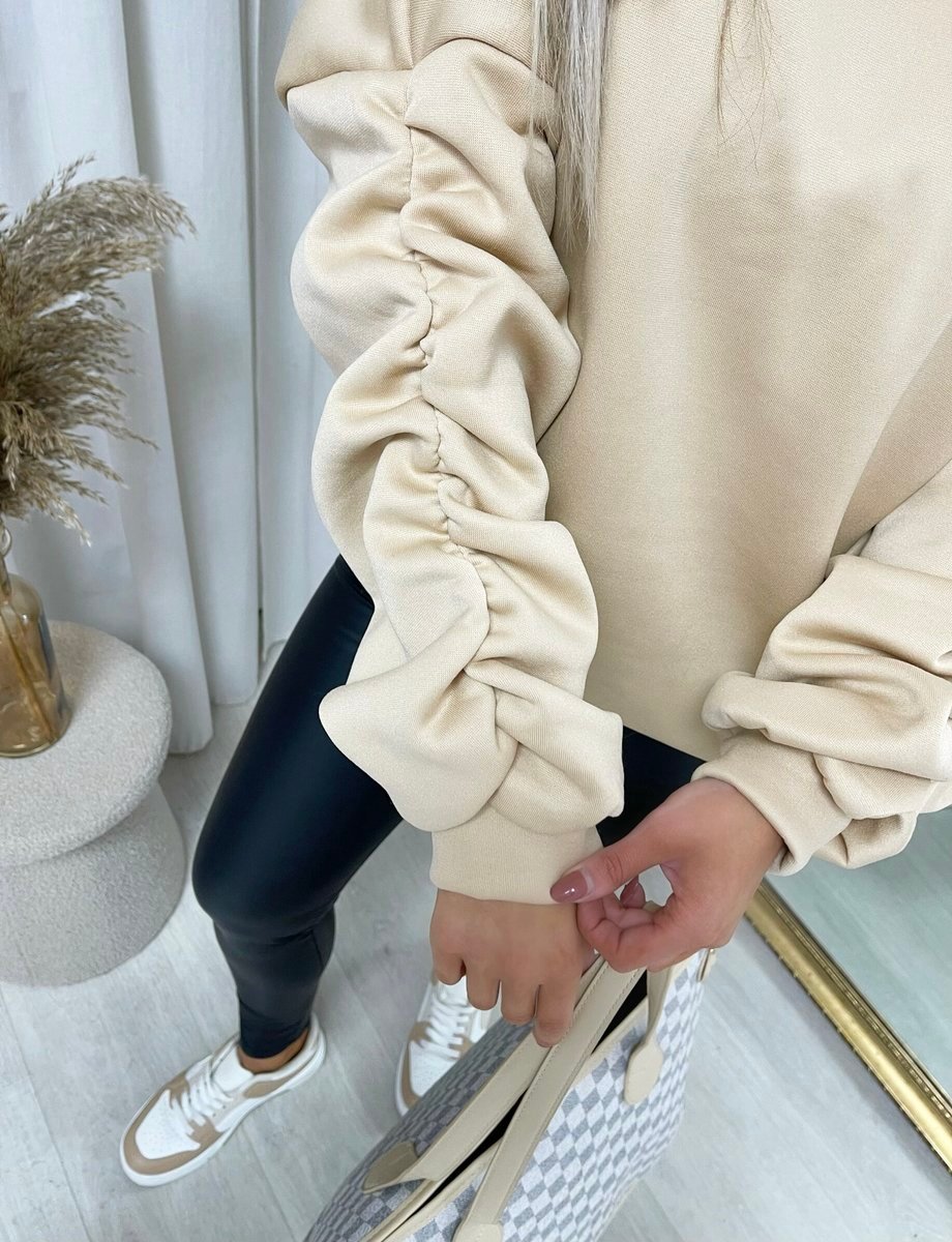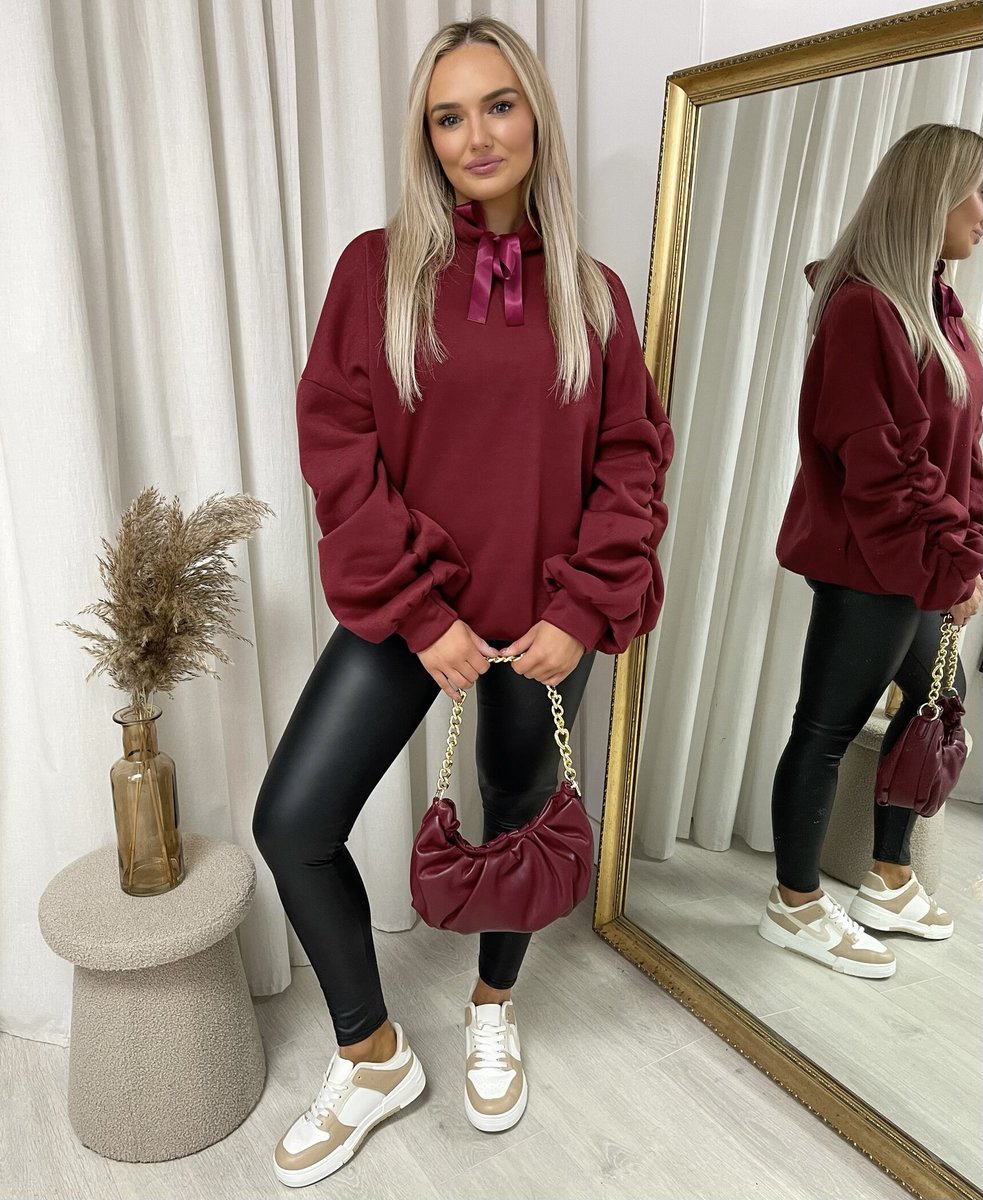 Oversized Ruched Sleeves Knitted Hoodie with Ribbon Detail