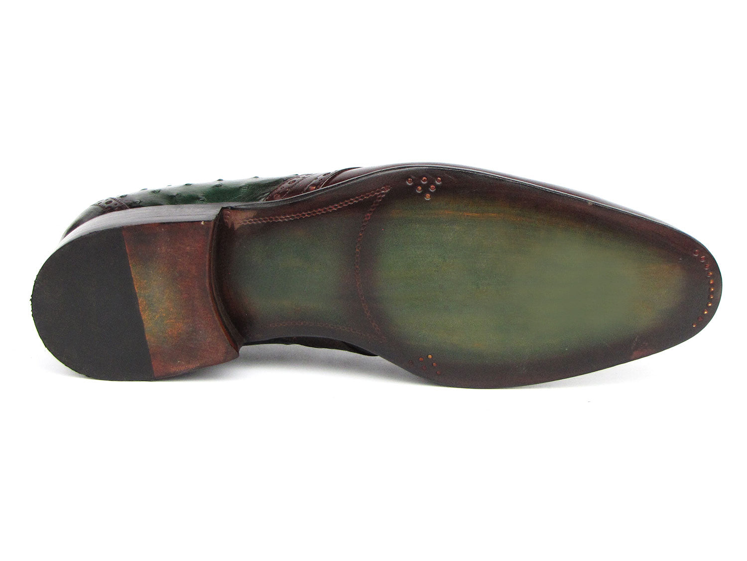 Paul Parkman Men's Genuine Ostrich Captoe Oxfords Green & Burgundy (ID#24XS11)